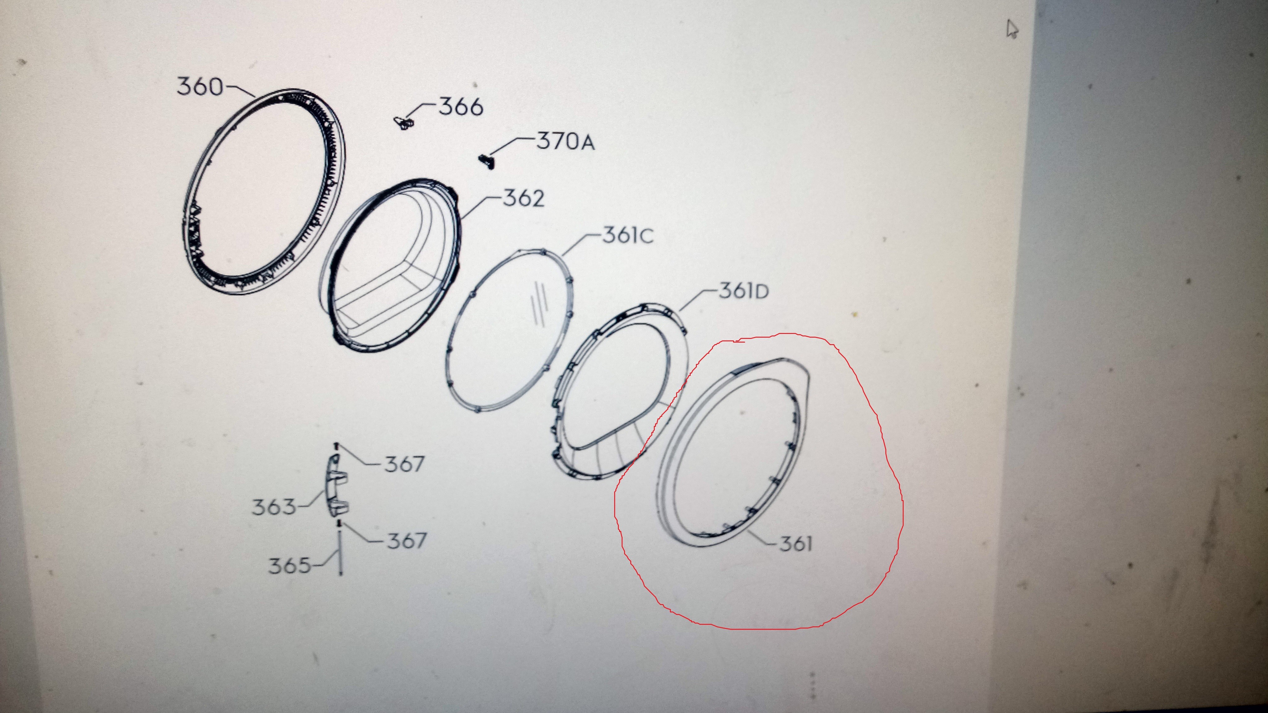 Džiovyklės ELECTROLUX / AEG priekinis rėmelis. TÜRRAHMEN,VORNE,WEISS,Ø490MM