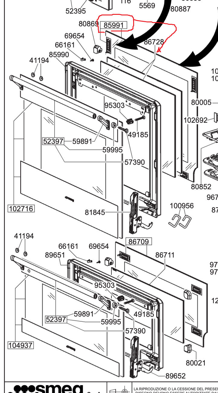 Orkaitės SMEG vidinis durų stiklas 466.5 X 384.5 mm,orig.