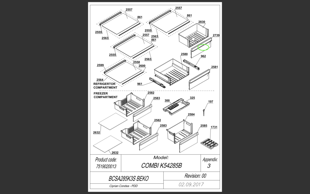 Šaldytuvo BEKO/GRUNDIG/ARCELIK, BIOF FRONT BEKO PRIN BI B16_T605_1_3 stalčiaus priekinė panelė,435x154x35mm,orig.