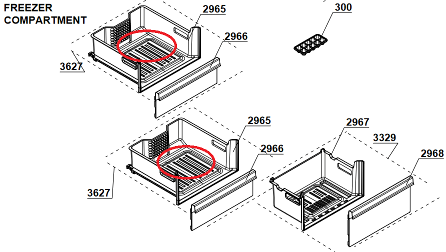 Šaldytuvo BEKO/GRUNDIG/ARCELIK viršutinis ,vidurinis šaldiklio stalčius ,be priekinės panelės,42cm x 39.5cm x 18cm,orig.