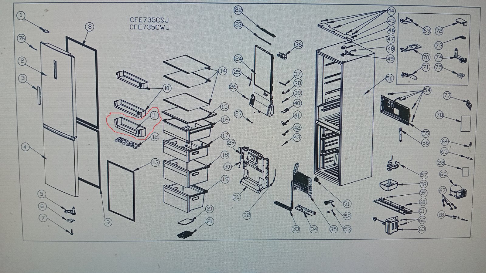 Šaldytuvo HAIER apatinė durų lentynėlė