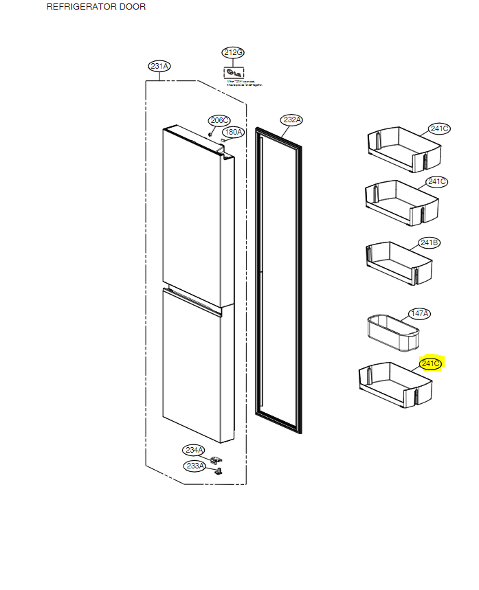 Šaldytuvo LG apatinė durų lentynėlė