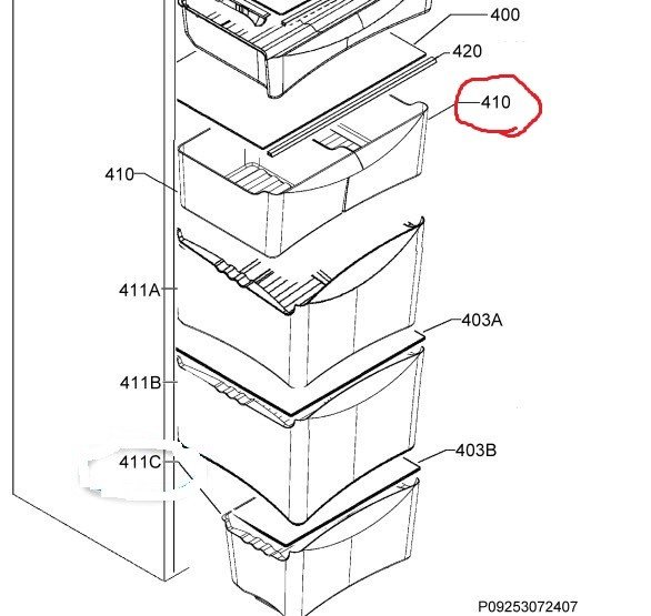Šaldytuvo ZANUSSI,ELECTROLUX / AEG daržovių stalčius dešinės pusės. 244,4X250mm,orig.